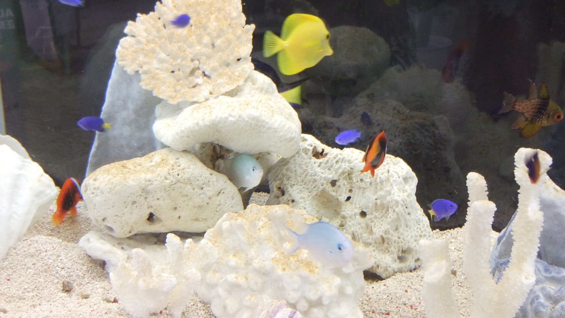石の間から魚が顔を出していたり小さな魚たちがチョコチョコっと出てきてかわいいです