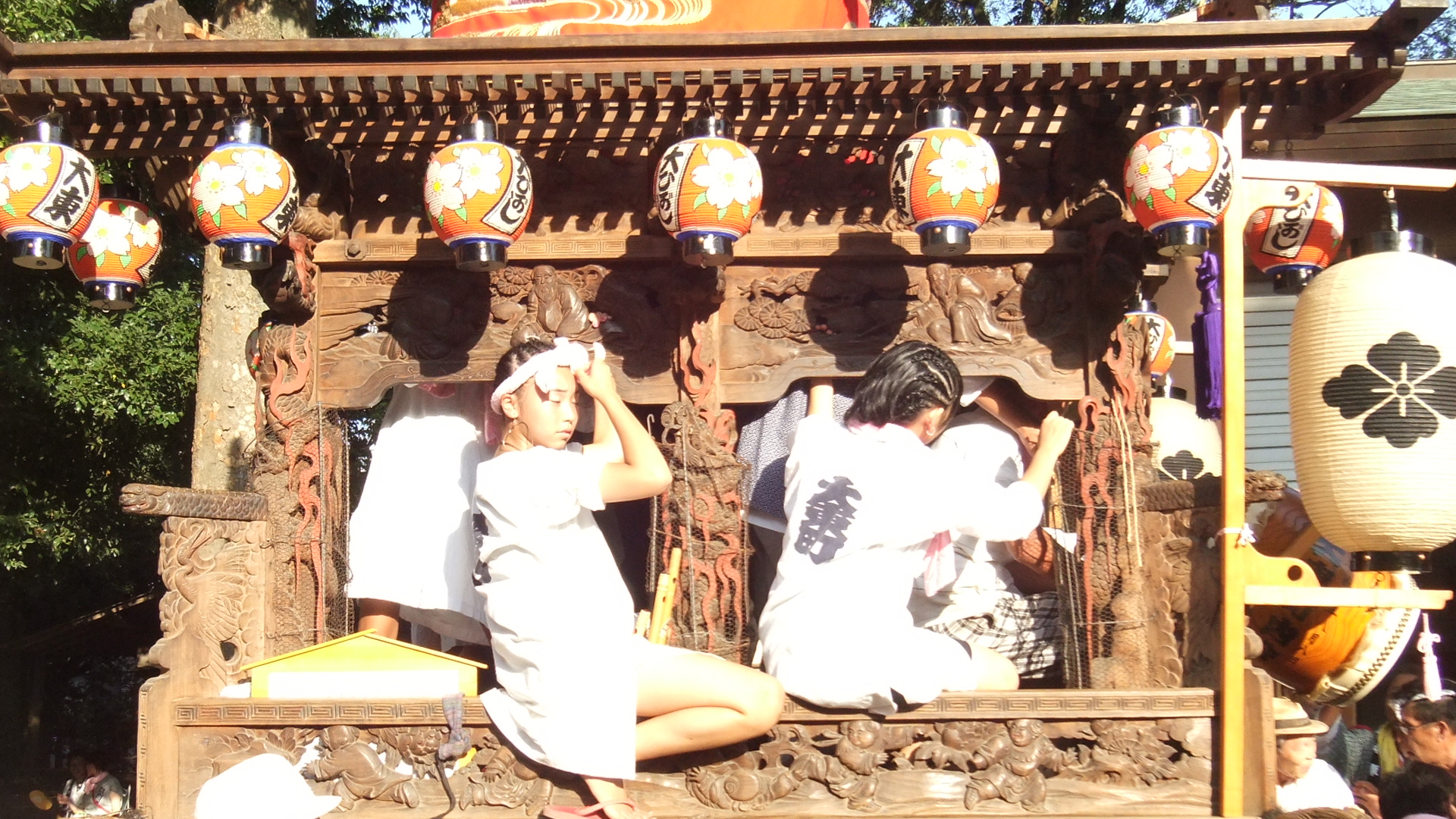 この台車は女性たちが活気よく祭りを盛り上げていました